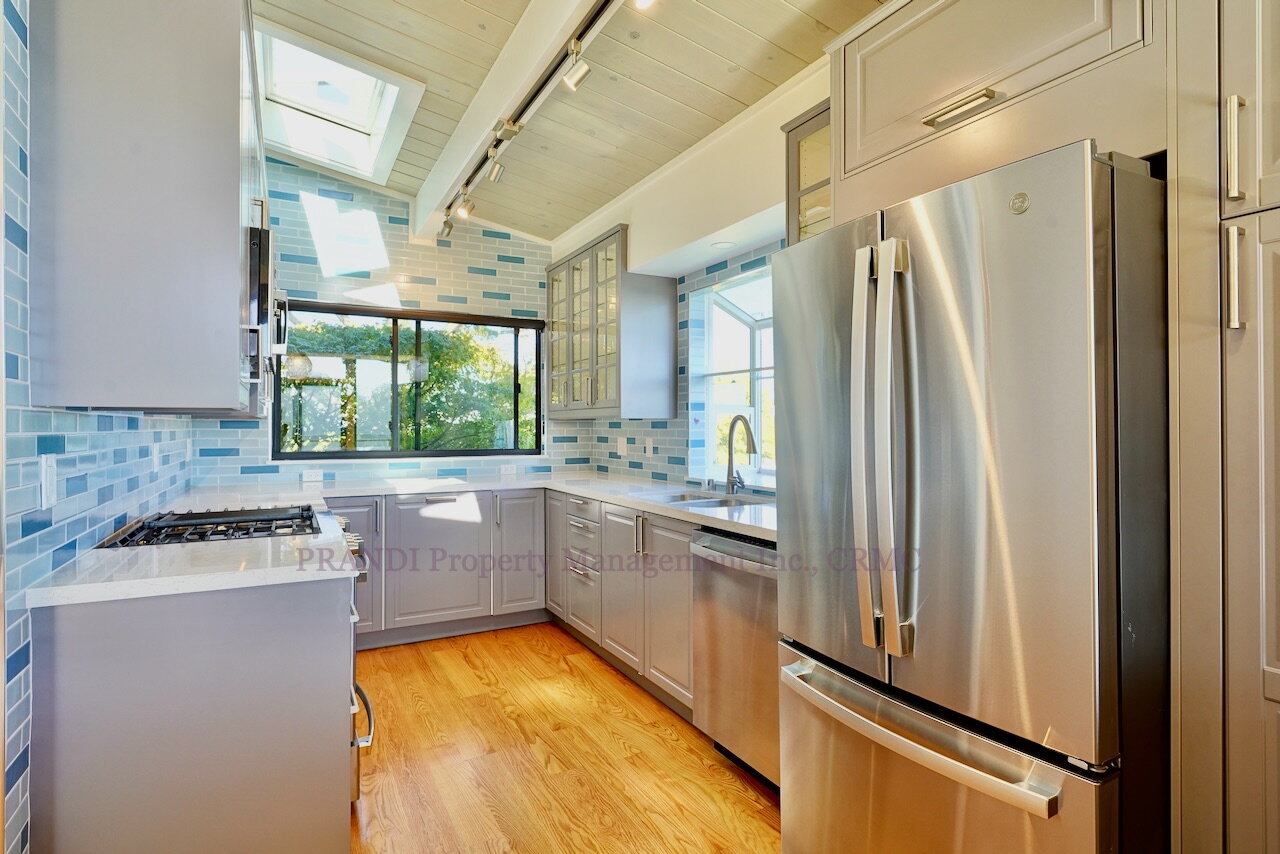You must see this completely remodeled, down-to-the-studs luxury rental, a unique offering in the market where no detail was spared in its tasteful design. Experience unparalleled, panoramic views of the San Francisco skyline, Alcatraz, Angel Island, and the Bay Bridge from nearly every room and from three separate decks. The home is bathed in ample natural light thanks to its south-facing orientation and abundance of oversized windows, highlighting the gorgeous oak hardwood floors and designer light fixtures throughout. The private primary suite is a true retreat, featuring an oversized soaking tub with stunning SF views and a private deck. With a versatile layout, two separate full-size kitchens with all new appliances, and an extremely quiet street location, this home offers flexibility and tranquility. Complete with a 2-car garage and convenient freeway access, there is truly nothing on the rental market quite like this property. A small dog would be considered, upon approval with an increase in the deposit. If you would like to make an appointment to view this special property, please call or text Matt at 415-455-1373.