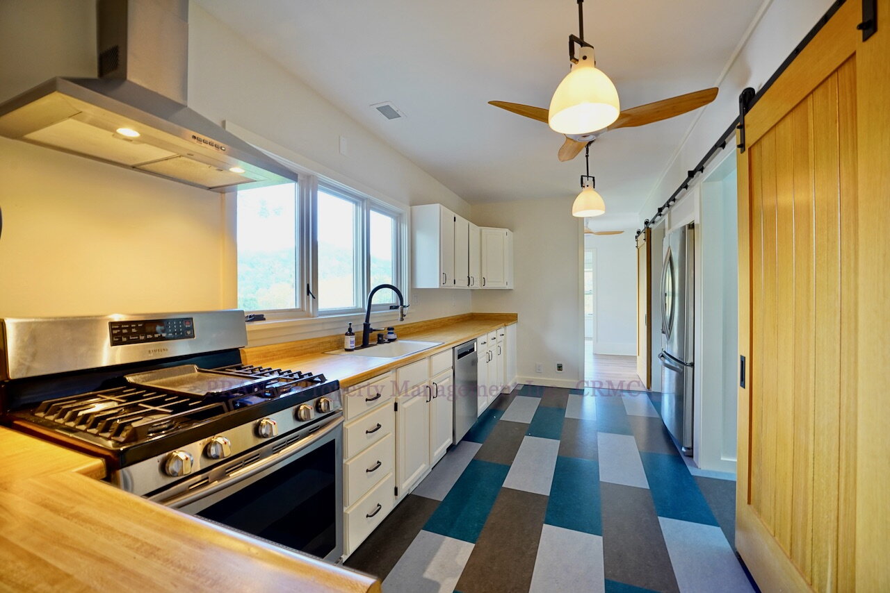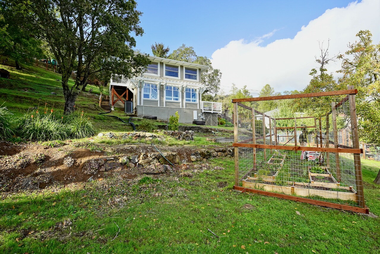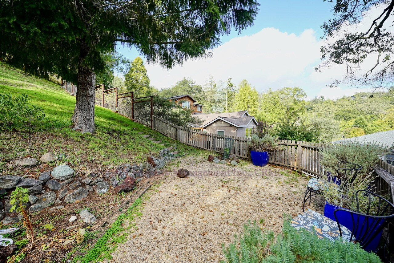 Bright in-door natural lighting with Central AC, Central Heat, an in-unit washer and dryer, a gas range, a dishwasher, ample storage in the garage, a fenced in a veggie garden with irrigation, fruit trees and it is nearby to the trails of Mt. Tam.