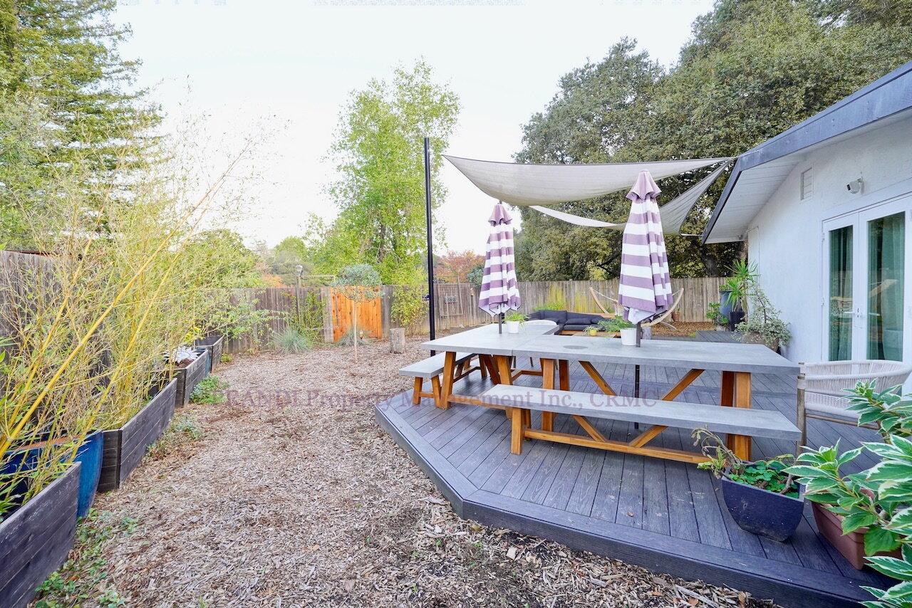 Situated at the end of a private cul-de-sac and offering direct gate access to coveted Pioneer Park, this charming 3-bedroom, 2-bathroom home is a rare find. The interior features easy-to-maintain laminate wood floors throughout and a spacious kitchen equipped with generous cabinet/counter space and two wine refrigerators. The massive backyard is an entertainer's dream, featuring a deck, a flat grassy area, and includes modern patio furniture for your immediate enjoyment. Additional amenities include a wood-burning fireplace, a Tesla EV charger, driveway parking, garden beds, and best of all, gardening services are included in the rent! If you would like to make an appointment to view this property, please call or text Gustavo at 415-462-9707.