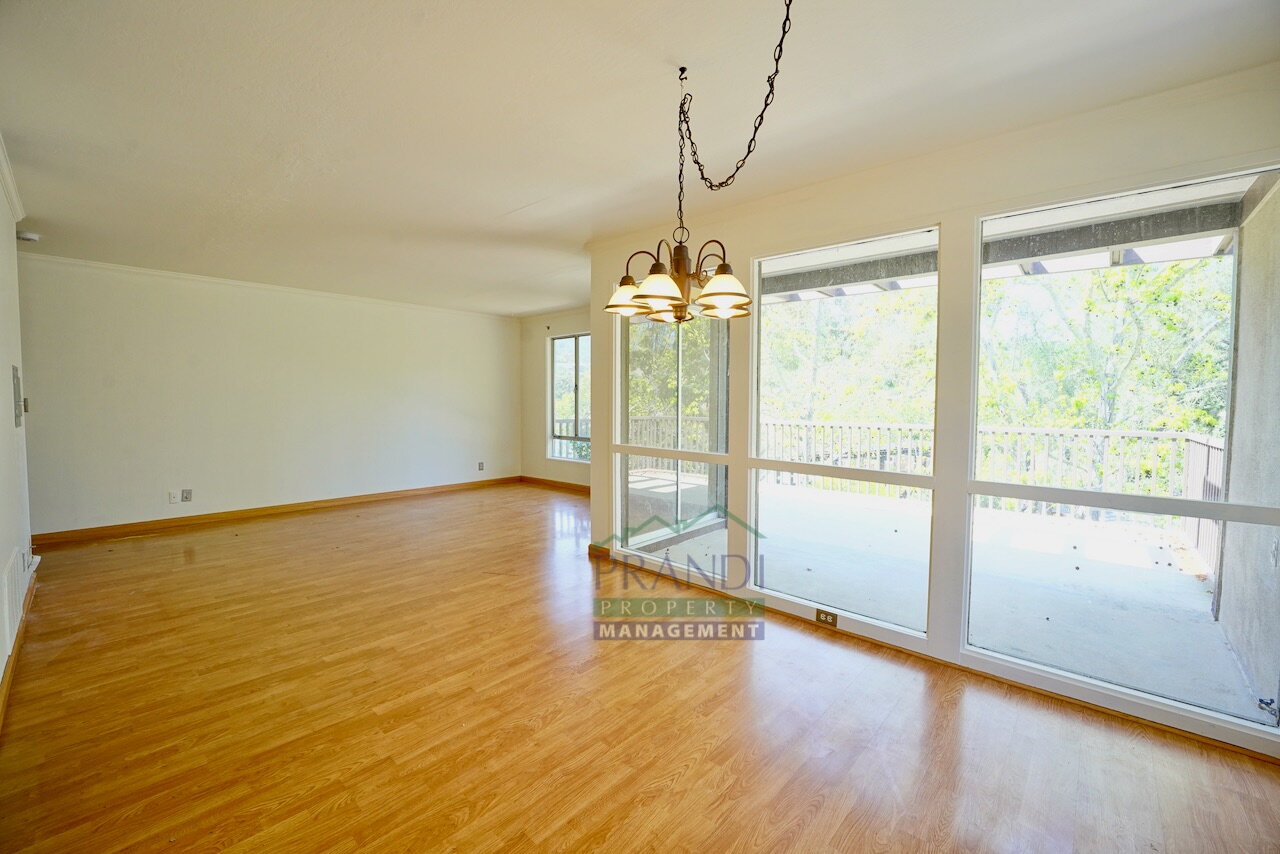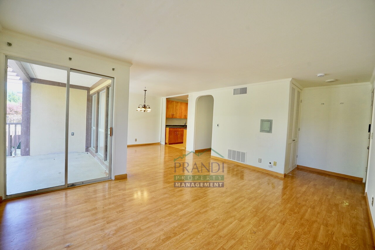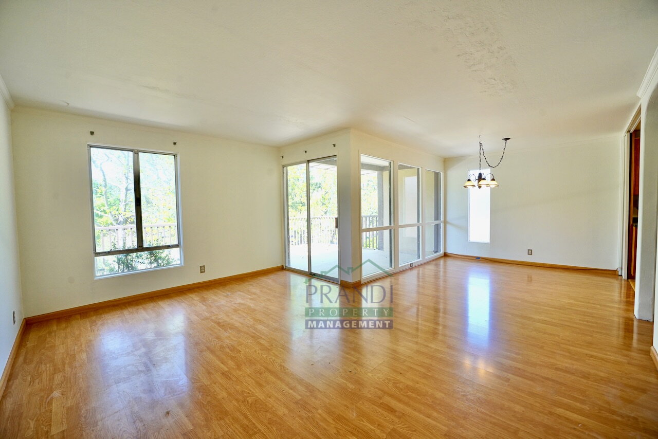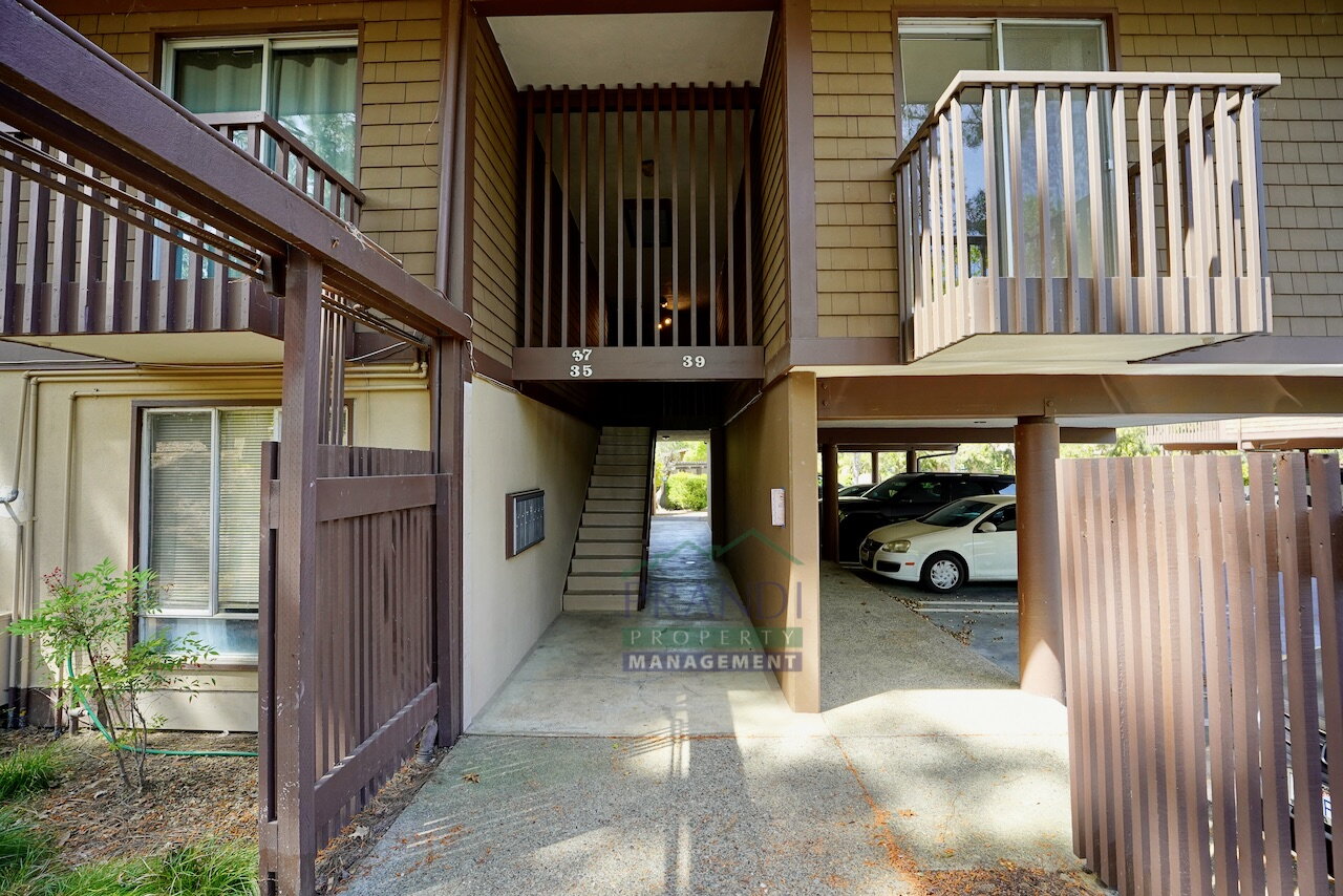 Welcome to 39 Forest Ln, a bright and airy 2-bedroom, 2-bathroom upper-level condo nestled among the trees in the heart of San Rafael, CA. This charming home features a spacious open-concept living and dining area with gleaming hardwood floors, large sliding glass doors, and an expansive private deck offering serene treetop views and a glimpse of the community pool below. The galley-style kitchen is well-appointed with warm wood cabinetry, granite-style countertops, a black double sink, electric cooktop, and ample storage. An elegant arched entryway connects the living areas, adding a classic architectural touch throughout. With two full bathrooms, covered carport parking, and a tranquil, nature-surrounded setting in desirable Marin County, this condo perfectly blends comfort and California charm.